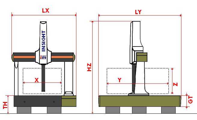 Granite X, Y, Z axes with Y-axis dovetail guideway machined into the granite table |
